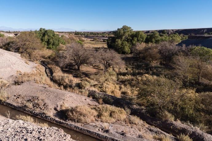 The Atacama and Sonoran deserts also share a common history of colonization of Indigenous territories presently divided by contested national borders. In both territories, lithium projects at different stages of development abut natural areas, primarily wetlands protected by local governments78 and, in the case of Chile, also by the Ramsar Convention, the UN’s international forum for the protection of wetlands worldwide.9 Farmlands are also vulnerable to lithium mining expansion. In Atacama, ancient Indigenous practices sustain a biodiverse oasis in the middle of the desert thanks to the community-managed use of the San Pedro River. Around the Salton Sea, the water from the Colorado River has shaped a territory characterized by extensive industrial crops that are consistently sustained by migrant workers. In both territories, different forms of agriculture coexist with extractive industries that pollute the air and water. The synergic and cumulative impacts of these activities, along with the lithium projects, threaten to transform these territories into green sacrifice zones10 pushed by private investors and local governments.